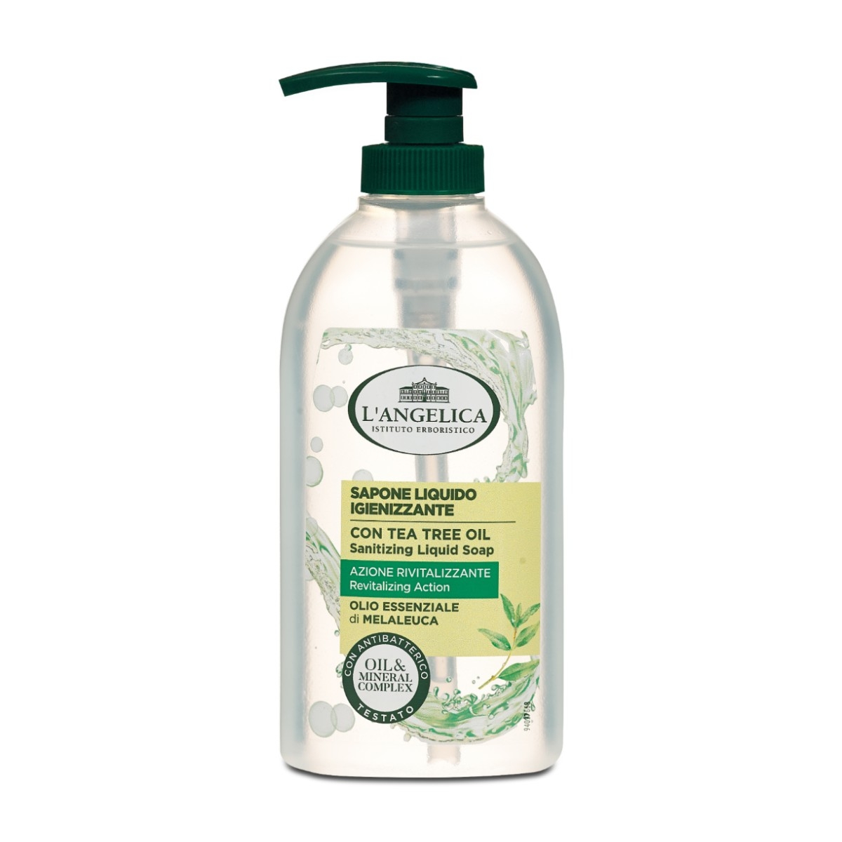 L’Angelica Tea Tree Oil Sanitizing Liquid Soap with tested antibacterial agent has a revitalizing action, thanks to the essential oil of Tea Tree Oil. Tea Tree Oil, known for its antibacterial and natural antifungal properties, helps to sanitize and cleanse your skin. The formula has been enriched with melaleuca essential, leaving your skin purified and gently scented