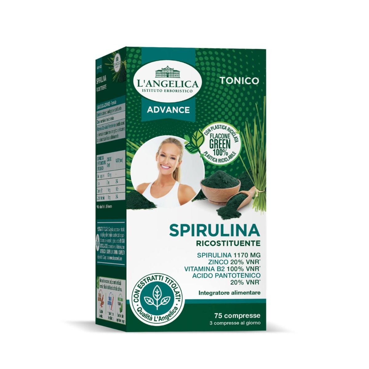 Integratore a base di Spirulina ad azione ricostituente ed energizzante.